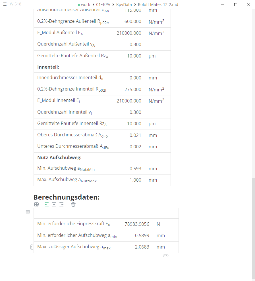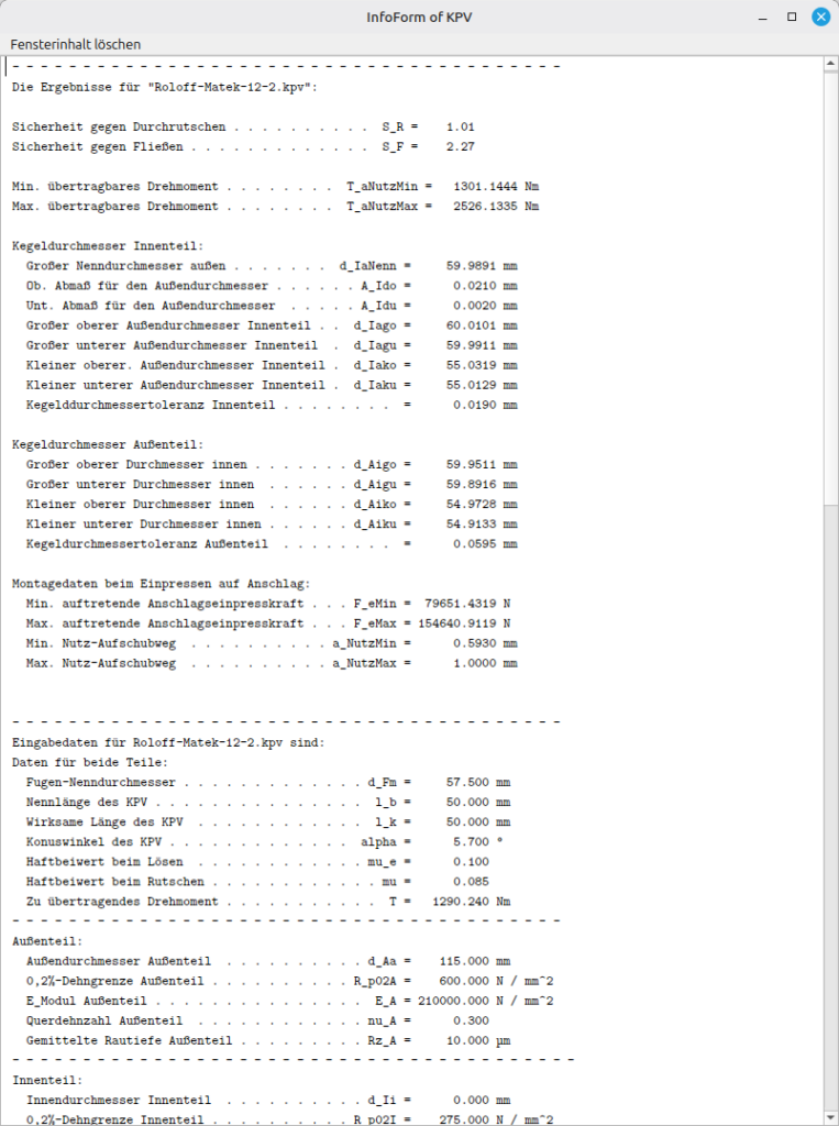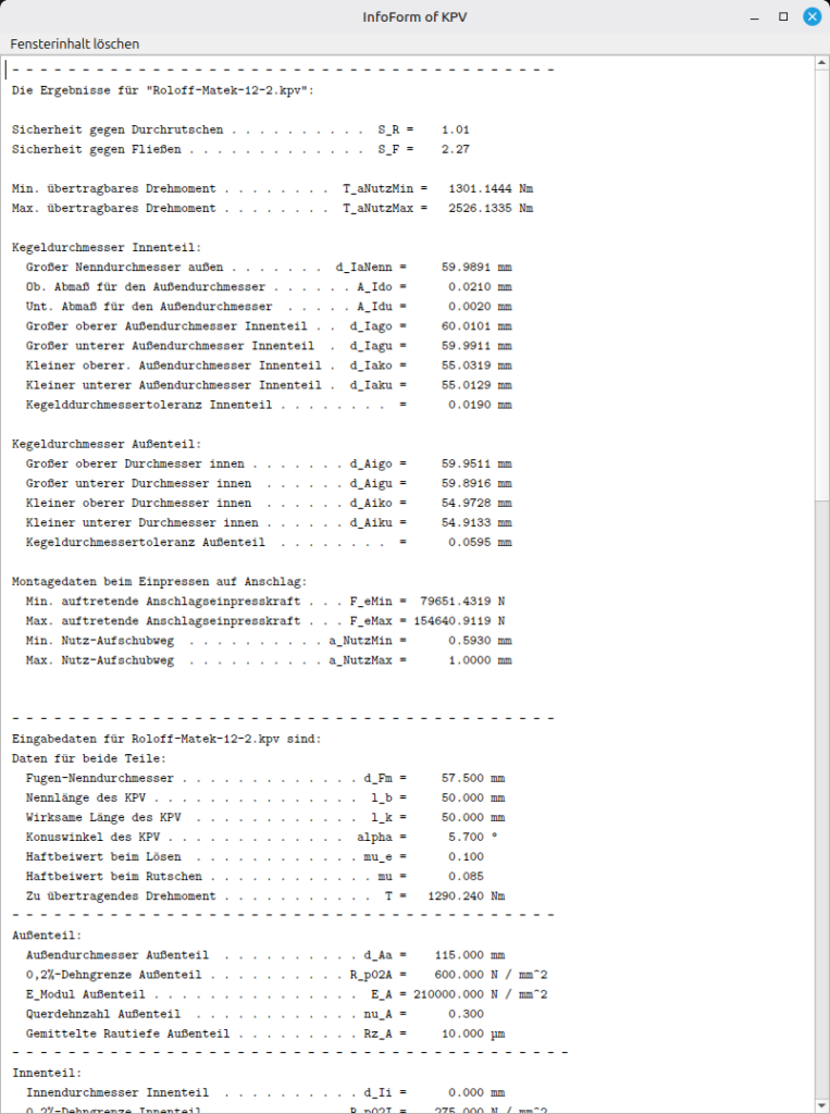 | Min. erforderliche Fugenpressung [N/mm²]: | 58,5 | 58,456 |