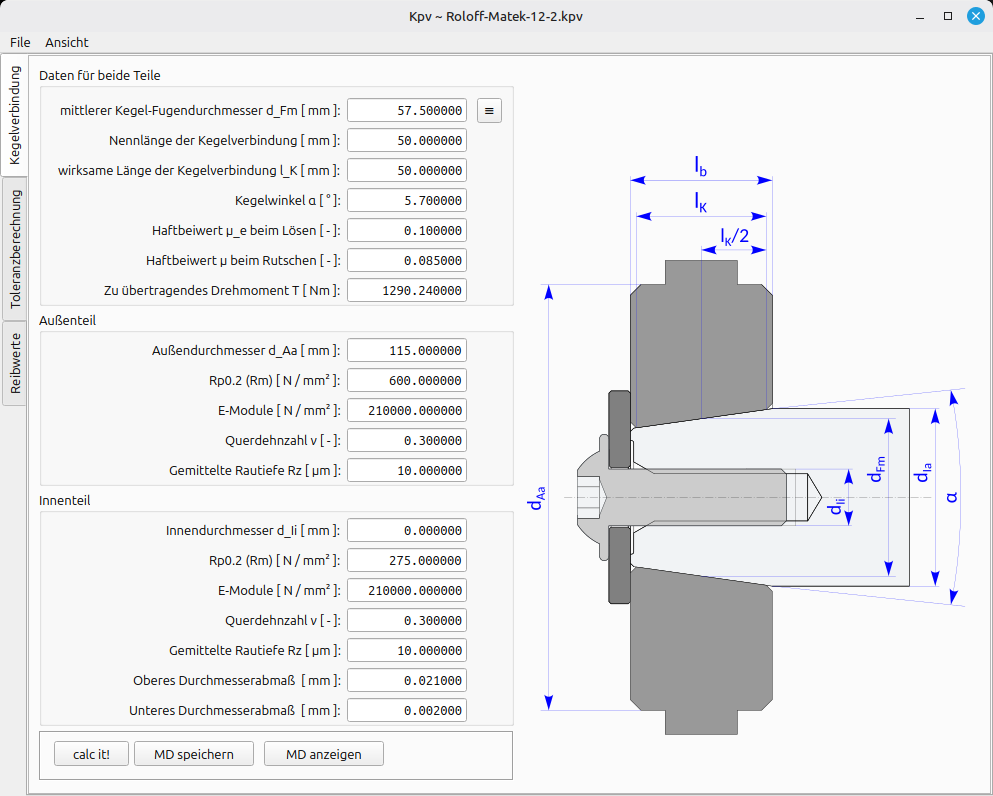Mit dieser Anwendung kann ein Kegelpressverband auf einem etwas anderem Weg berechnet werden: